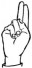На ћирилици написано РАДНА БРАШИЋ састоји се из 11 слова [?]. Исписано ћириличном једноручном азбуком за глувонеме: